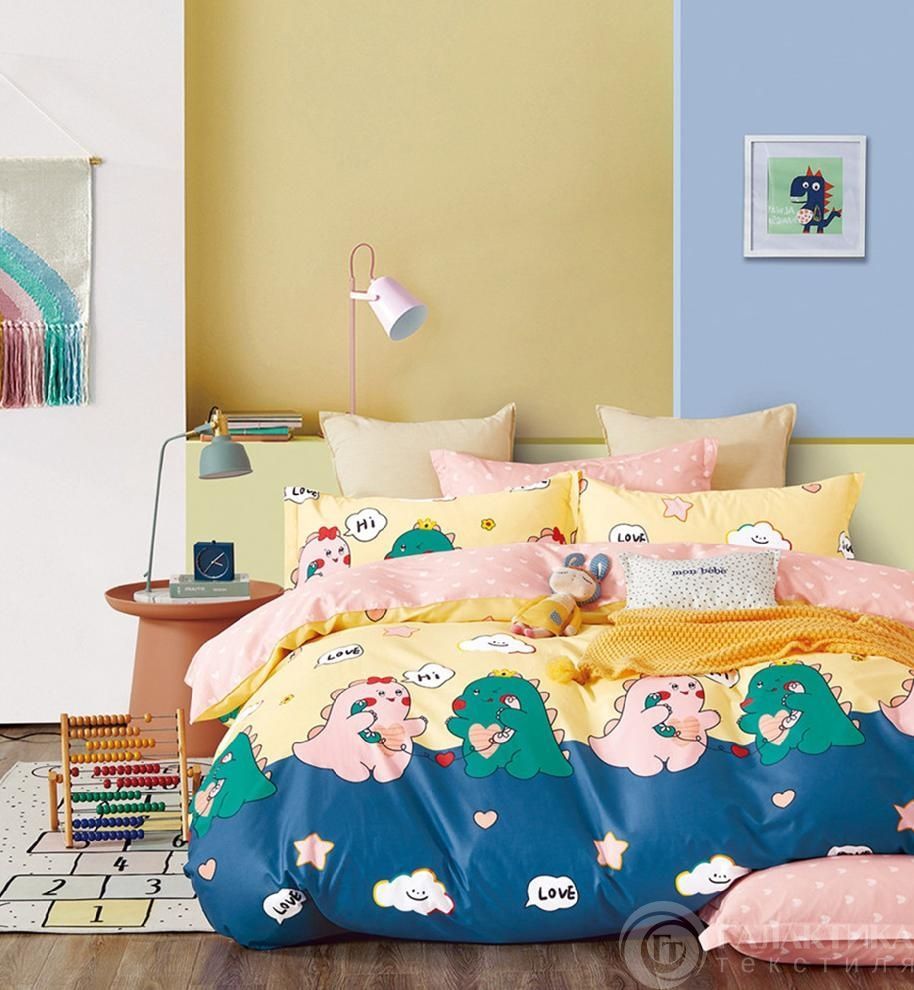 Прекрасный вариант постельного белья из сатина (твил) высокого качества для детей с веселыми динозаврами.