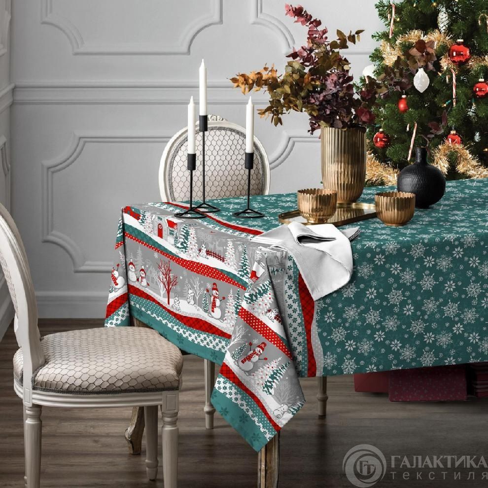 Нарядный вариант новогодней скатерти для себя и в подарок. С зимним рисунком (со снеговиками, ёлочными украшениями, снежинками), из натуральной ткани - рогожки. Состав 100% хлопок.