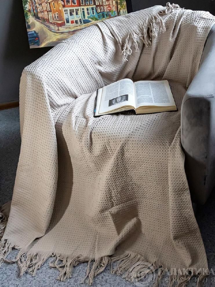 Однотонное покрывало приятного бежевого цвета из вафельного полотна придаст спальне или гостиной нотки спокойствия и легкости.