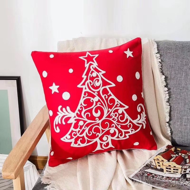 Новогодняя наволочка декоративная, с ёлкой, из конопли.