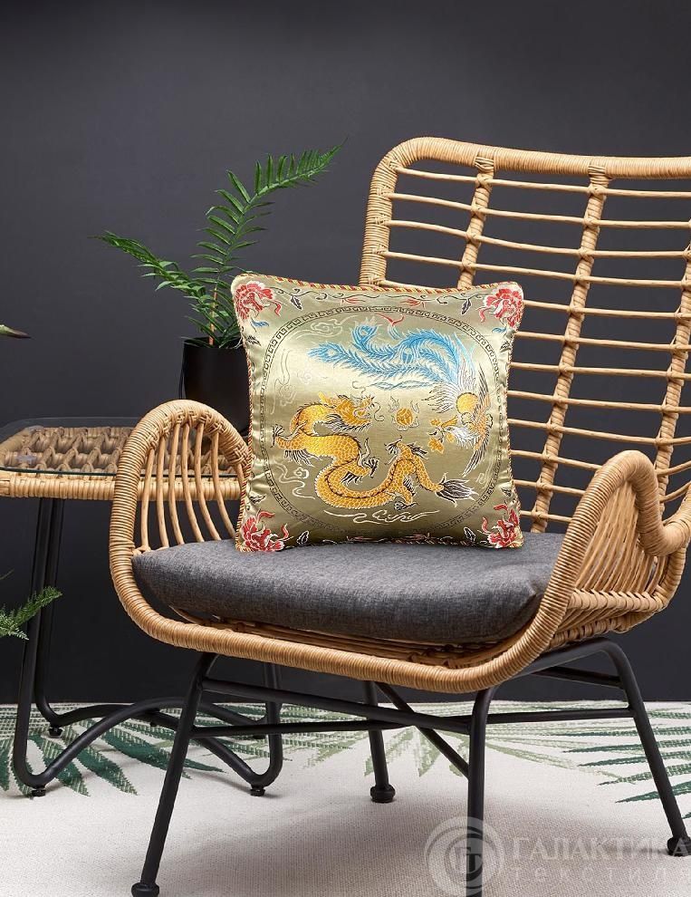 Декоративная подушка с драконом, из жаккарда.